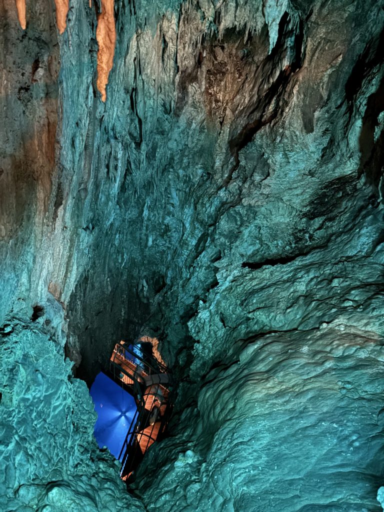 最新の調査で確認された総延長は4,088m以上に及び、高低差は±195mに達しています。見学コースもけっこう昇降があり、暗いので足元が怖い!